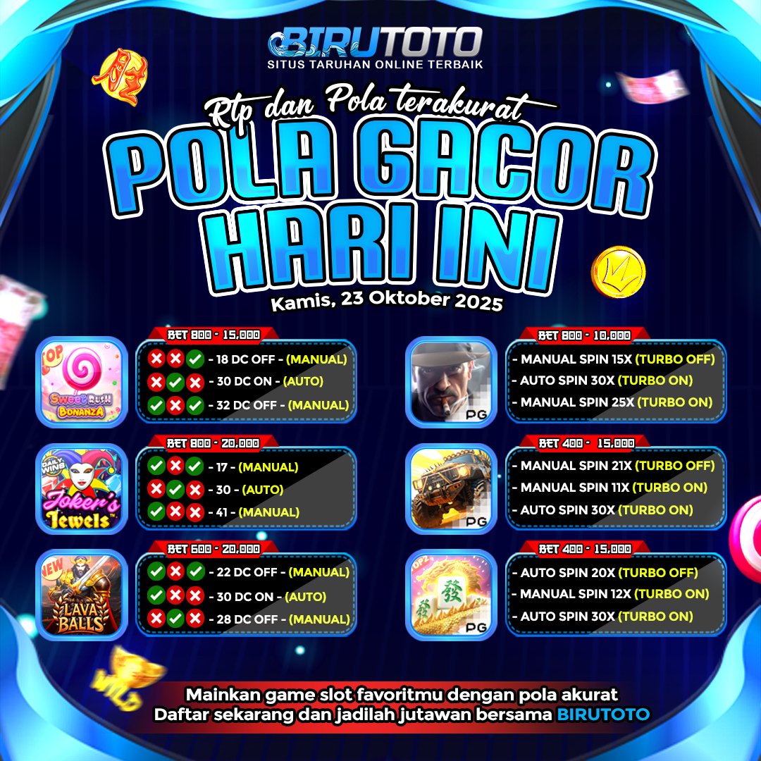 Info RTP Dan Update Pola Gacor Hari Ini Kamis 23 Oktober 2025 Siang October 23, 2025October 23, 2025by admin slotby admin slot Info RTP Dan Update Pola Gacor Hari Ini Kamis 23 Oktober 2025 Dari Birutoto Don't MissInfo RTP Dan Update Pola Gacor Hari Ini Kamis 13 November 2025 PagiInfo RTP Dan Update Pola Gacor Hari Ini Rabu 12 November 2025 MalamInfo RTP Dan Update Pola Gacor Hari Ini Rabu 12 November 2025 SoreInfo RTP Dan Update Pola Gacor Hari Ini Rabu 12 November 2025 SiangInfo RTP Dan Update Pola Gacor Hari Ini Rabu 12 November 2025 Pagi
