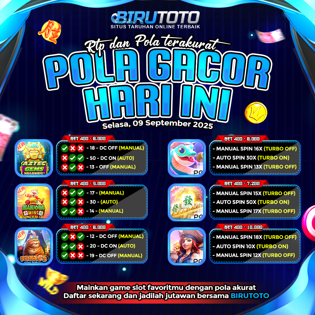 Info RTP Dan Update Pola Gacor Hari Ini Minggu 09 September 2025 Malam September 9, 2025September 9, 2025by admin slotby admin slot Info RTP Dan Update Pola Gacor Hari Ini Minggu 09 September 2025 Dari Birutoto Don't MissInfo RTP Dan Update Pola Gacor Hari Ini Kamis 13 November 2025 PagiInfo RTP Dan Update Pola Gacor Hari Ini Rabu 12 November 2025 MalamInfo RTP Dan Update Pola Gacor Hari Ini Rabu 12 November 2025 SoreInfo RTP Dan Update Pola Gacor Hari Ini Rabu 12 November 2025 SiangInfo RTP Dan Update Pola Gacor Hari Ini Rabu 12 November 2025 Pagi