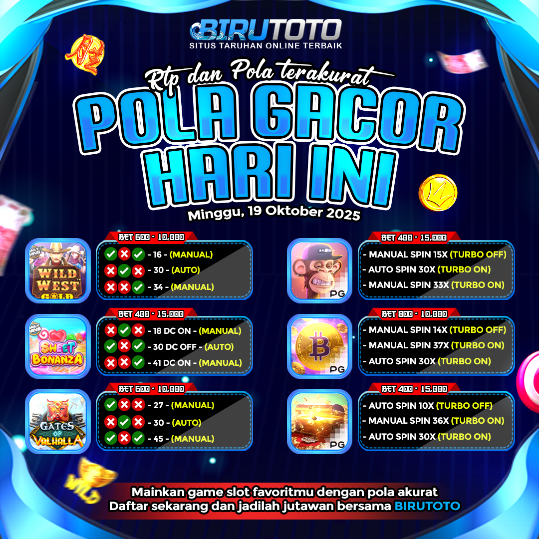 Info RTP Dan Update Pola Gacor Hari Ini Minggu 19 Oktober 2025 Siang October 19, 2025by admin slotby admin slot Info RTP Dan Update Pola Gacor Hari Ini Minggu 19 Oktober 2025 Dari Birutoto Don't MissInfo RTP Dan Update Pola Gacor Hari Ini Minggu 19 Oktober 2025 SoreInfo RTP Dan Update Pola Gacor Hari Ini Minggu 19 Oktober 2025 PagiInfo RTP Dan Update Pola Gacor Hari Ini Sabtu 18 Oktober 2025 MalamInfo RTP Dan Update Pola Gacor Hari Ini Sabtu 18 Oktober 2025 SoreInfo RTP Dan Update Pola Gacor Hari Ini Sabtu 18 Oktober 2025 Siang