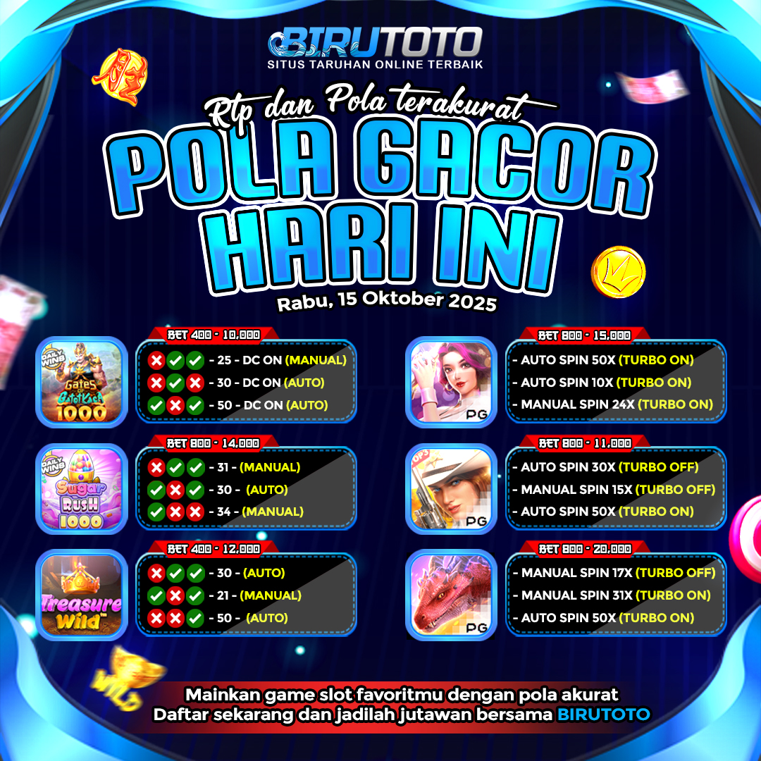 Info RTP Dan Update Pola Gacor Hari Ini Rabu 15 Oktober 2025 Pagi October 14, 2025by admin slotby admin slot Info RTP Dan Update Pola Gacor Hari Ini Rabu 15 Oktober 2025 Dari Birutoto Don't MissInfo RTP Dan Update Pola Gacor Hari Ini Selasa 14 Oktober 2025 MalamInfo RTP Dan Update Pola Gacor Hari Ini Selasa 14 Oktober 2025 SoreInfo RTP Dan Update Pola Gacor Hari Ini Selasa 14 Oktober 2025 SiangInfo RTP Dan Update Pola Gacor Hari Ini Senin 13 Oktober 2025 MalamInfo RTP Dan Update Pola Gacor Hari Ini Senin 13 Oktober 2025 Sore