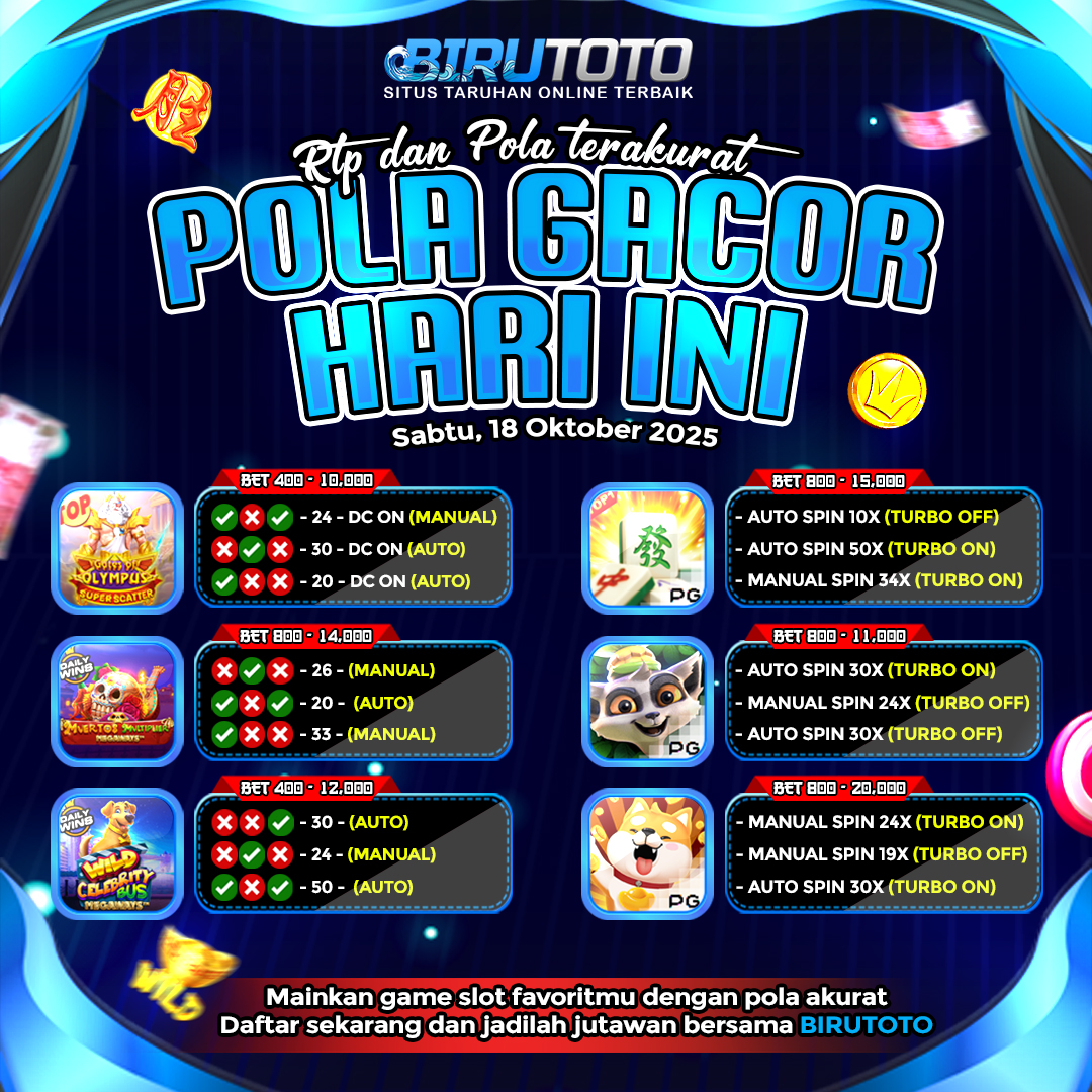 Info RTP Dan Update Pola Gacor Hari Ini Sabtu 18 Oktober 2025 Malam October 18, 2025by admin slotby admin slot Info RTP Dan Update Pola Gacor Hari Ini Sabtu 18 Oktober 2025 Dari Birutoto Don't MissInfo RTP Dan Update Pola Gacor Hari Ini Sabtu 18 Oktober 2025 SoreInfo RTP Dan Update Pola Gacor Hari Ini Sabtu 18 Oktober 2025 SiangInfo RTP Dan Update Pola Gacor Hari Ini Sabtu 18 Oktober 2025 PagiInfo RTP Dan Update Pola Gacor Hari Ini Jumat 17 Oktober 2025 MalamInfo RTP Dan Update Pola Gacor Hari Ini Jumat 17 Oktober 2025 Sore